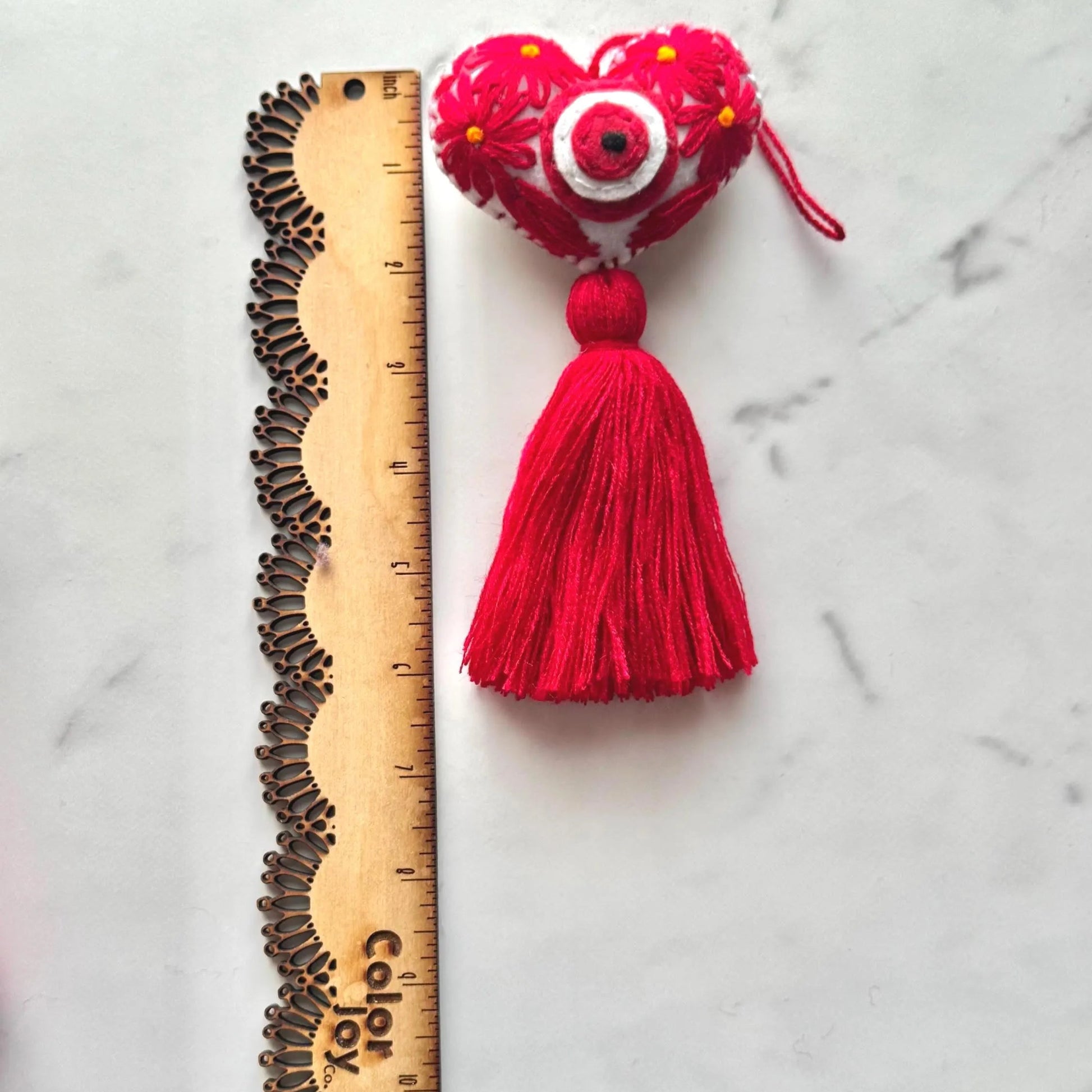 RED Embroidered evil eye heart shaped tassel makes the perfect colorful and joyful accessory for your bag or rear view mirror!