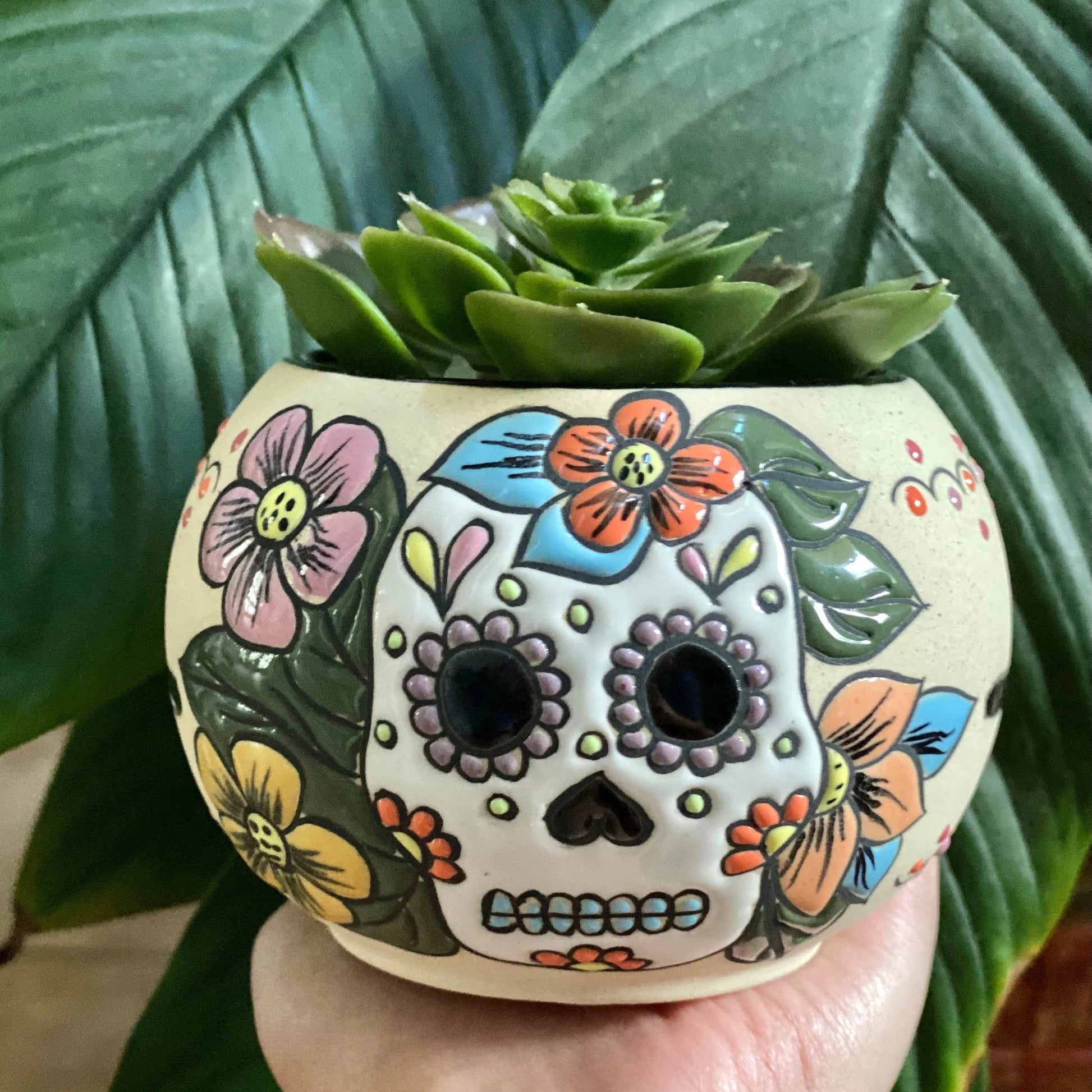 Add color & joy to your home with these sugar skull handmade & painted by hand planter pots!