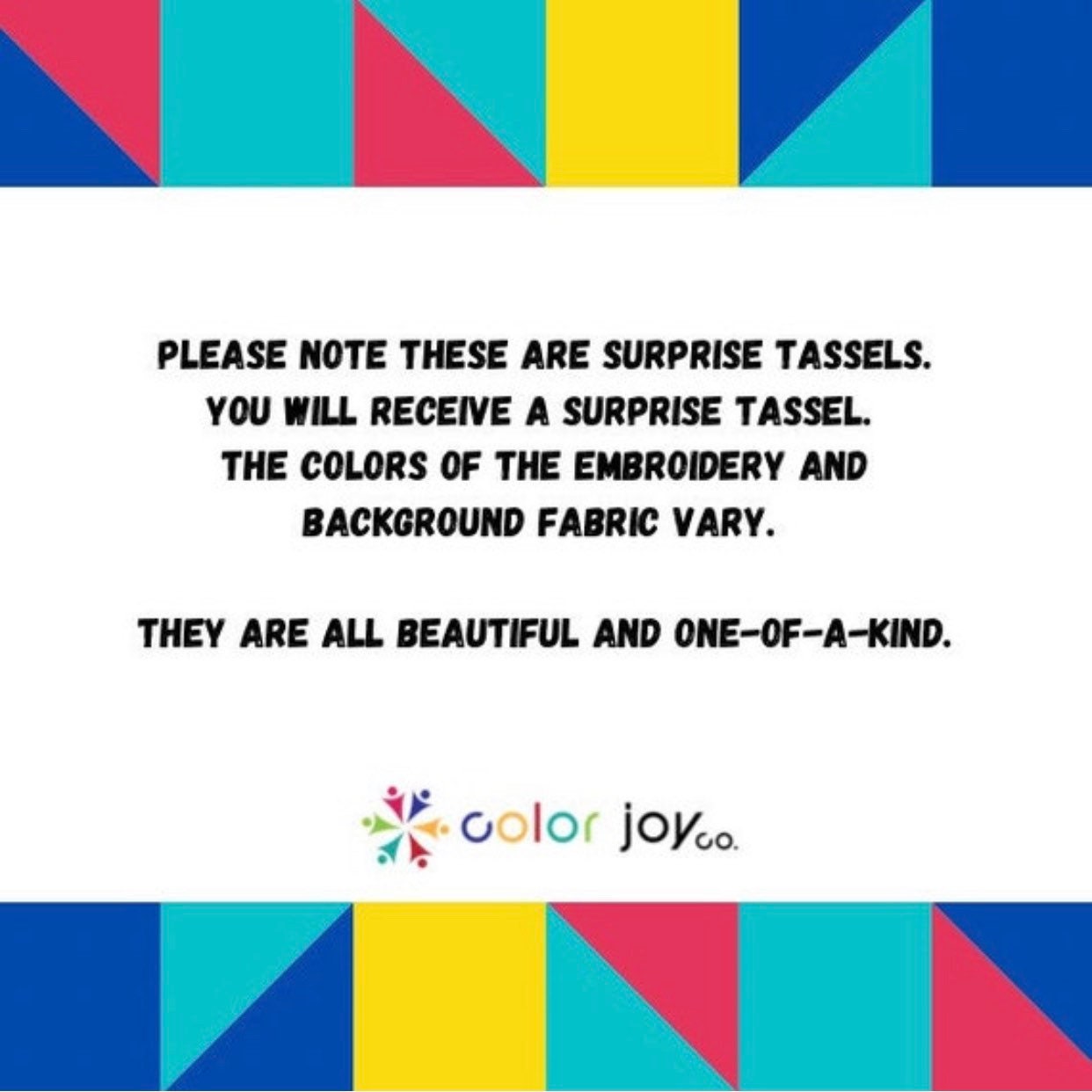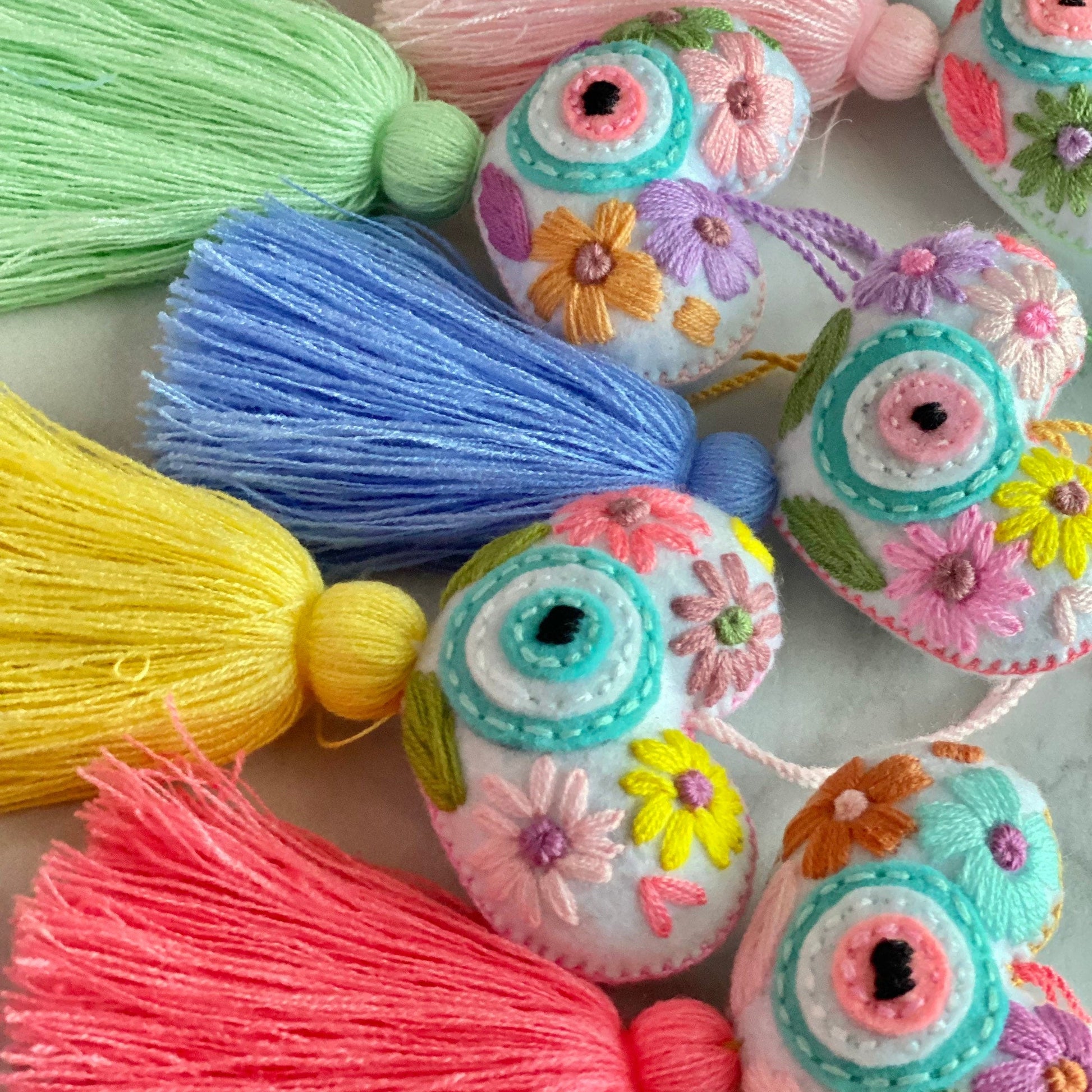 You will receive a SURPRISE pastel evil eye tassel. The colors of the embroidery and background fabric vary. They are all beautiful and one-of-a-kind.